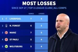 体育资讯10月30日讯 利物浦0-3不敌水晶宫,各项赛事仅7场比赛1胜6负,数据统计显示,利物浦是同一时期五大联赛所有球队中输球场次最多的。